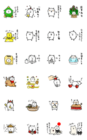 冬にぴったりなスタンプ。自分ツッコミくまの動きがなんとも言えない、かわいいー。