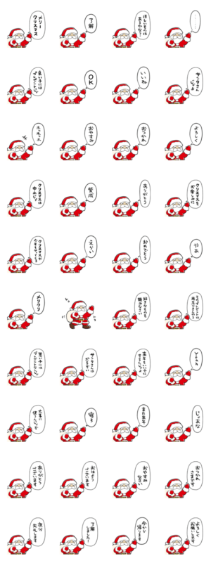 しゃべるサンタクロースのスタンプです。クリスマスのプレゼントを探る用とかクリスマスイブ用とかお祝い用とかにどうぞ。敬語もあります。オカヤマ より発売