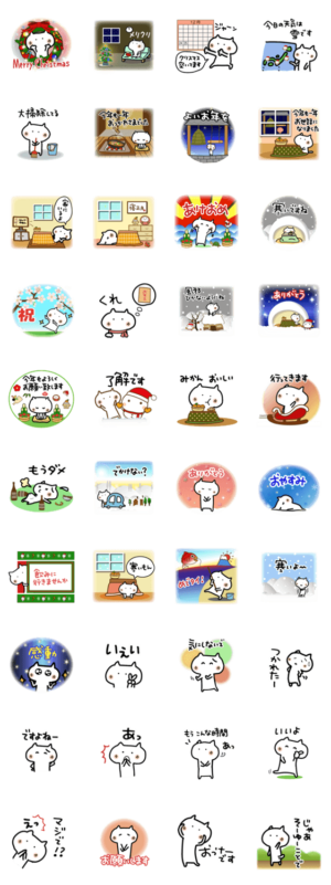 冬と言えば猫。今年の冬はこのかわいい猫のスタンプをドンドン使って、楽しく過して行きます。