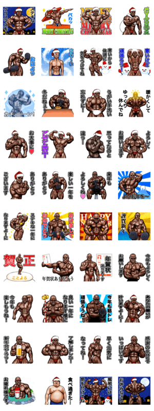 筋肉マッチョ 年末年始 クリスマス お正月 スタンプ画像一覧
