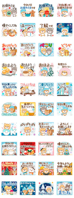 年末年始やクリスマスなど、冬に毎年使える可愛いスタンプ。しば犬好きにはたまらない!