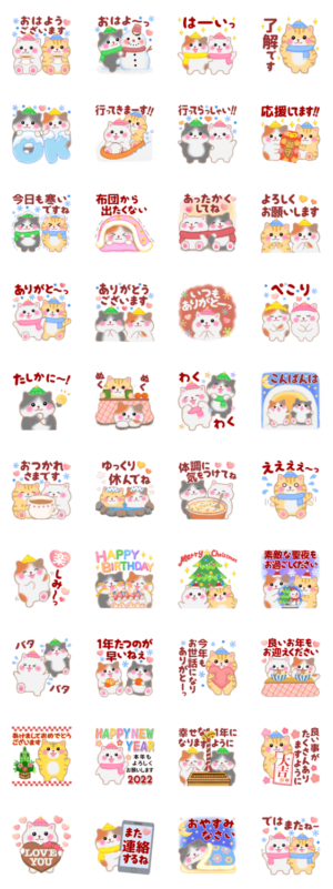 年末年始に賑やかになるスタンプです。可愛い上にたくさん種類があって最高ですね。