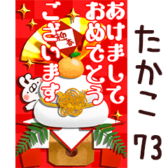 たかこ/タカコ専用73。正月/お正月/年賀状/動く/敬語/あけおめ/年末年始/喪中/ねことうさぎの名前スタンプ/山田まぽん作。※他の名前は「○○専用73」で検索★山田まぽん 新 名前スタンプ より発売