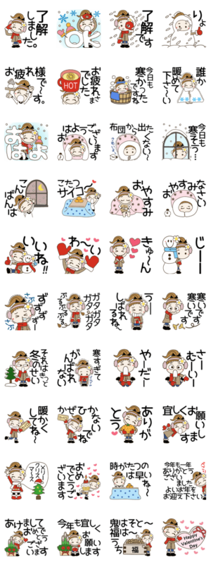 寒い冬に使いたい可愛いスタンプです。種類も豊富で嬉しいですね。