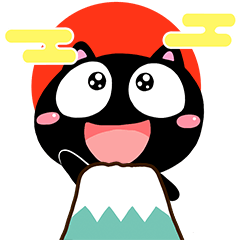 【くろちー】の元気な黒猫の【年末年始のあいさつ】編。クリスマス等、冬のあいさつを含めたクロネコのビッグスタンプ。冬に便利なBIGくろねこスタンプです。【かたこ】