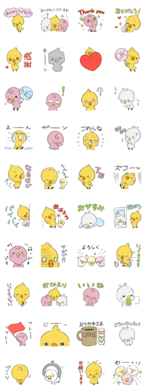 ミニクレーンゲーム「ぴより~な1号」のキャラクター ぴより~ながスタンプになりました!ぴより~なのスタンプでみんなに「ありがとう」を伝えてください♪㈱ひよこのおかげ より発売