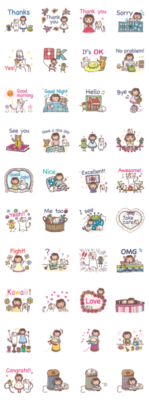 キルターさん、ハンドメイド作家さん、手芸好きさん、猫好きさん専用英語スタンプ。文字なしスタンプも多いので海外の手芸仲間とも楽しく交流ができます。