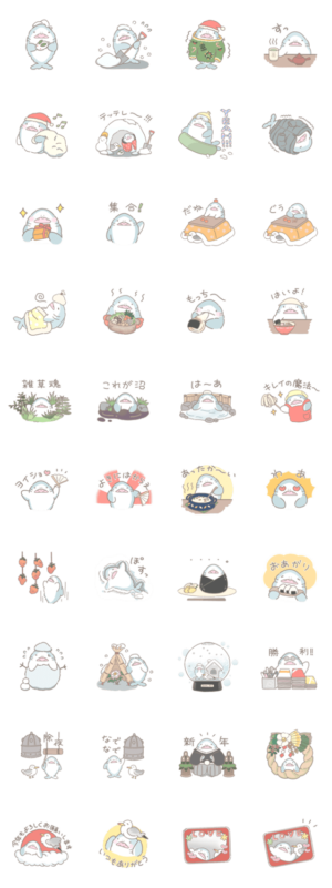 ふんわりしたサメのスタンプ第5弾です。雪やクリスマス、お正月ものを詰め合わせました。冬を楽しむふあさめを使ってみてください!襟えり より発売