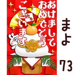 まよ/マヨ専用73。正月/お正月/年賀状/動く/敬語/あけおめ/年末年始/喪中/ねことうさぎの名前スタンプ/山田まぽん作。※他の名前は「○○専用73」で検索★山田まぽん 新 名前スタンプ より発売