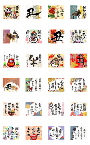 動く!書道家の筆文字年賀状 大人 華やか 丑 スタンプ画像一覧