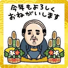 応援したくなるような悲哀に満ちたこのおじさんが魅力的です。新年の挨拶はもちろん、通年でも使えます。