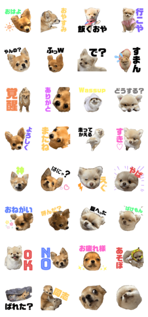 女王なチワワ きなこ(3)♀と やんちゃなポメラニアン おもち(2)♀のワンちゃん姉妹!表情豊かな2匹のスタンプをお楽しみください♪TYGA より発売