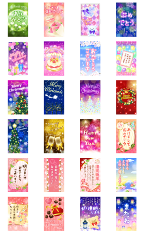 年中使えるイベントスタンプ☆カラフルなグリーティングカード風です♪
