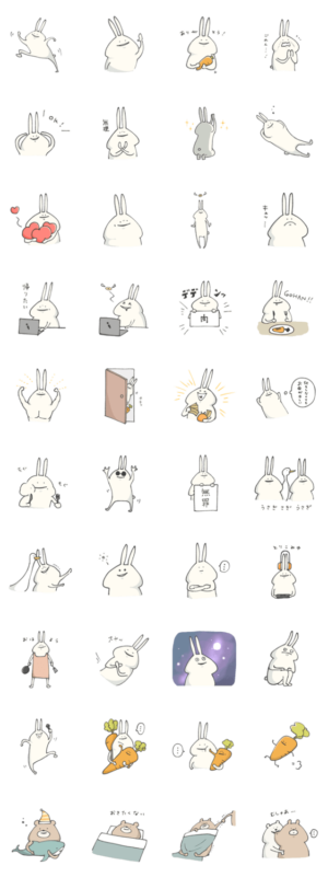 ゆるいうさぎ時々クマのスタンプです。にんじんが好き。あかねこにごう より発売