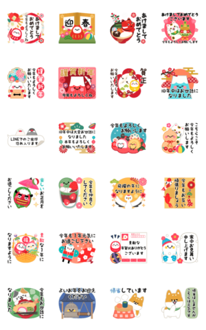 お正月らしい可愛いイラストで、色合いがとても好きなスタンプです