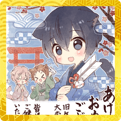 あおい君のBIGあけおめスタンプです。本物の年賀状に見えるように作りました!新年の挨拶にたくさん送ってみてくださいね^^ ※このスタンプはトークルームで大きく表示されるBIGスタンプです。はしもきくり より発売