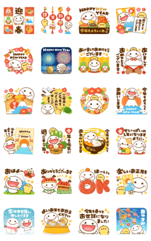 ゆるかわ棒人間とぴよこが可愛く飛び出す!!毎年使える年末年始・お正月の挨拶スタンプです♪ぴよたぬき♡ より発売