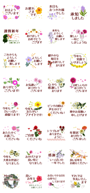 大人の上品な言葉、そして上品な花のイラストが合わさって、かなり清楚なスタンプになっています。