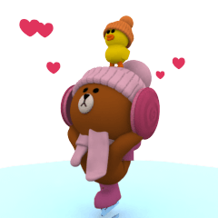 ブラウンの冬スタンプです。サリーと共演でスケートもします。クリスマス,年末年始も! ※BROWN & FRIENDS をみんなでつくろう!キャンペーン参加スタンプですG-flash より発売