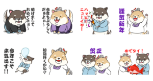 柴犬のシバ田さん夫婦のあけおめスタンプです!ゆ〜きゃん より発売