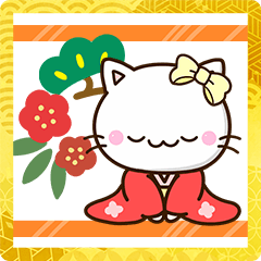 リボンをつけた小さい白ネコ『ちびシロ』。『小さい黒猫』も登場する年末年始のあいさつ編です。普段の会話にも使えるビッグスタンプ。しろねこ好きな方にぜひ。【かたこ】 ※このスタンプはトークルームで大きく表示されるBIGスタンプです。かたこ より発売
