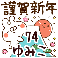 ゆみこ/ユミコ専用74。お正月/年末年始/あけおめ/年賀状/動く/かわいい/正月/虎/ねことうさぎの名前スタンプ/山田まぽん作。※他の名前は「○○専用74」で検索★