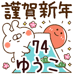 ゆうこ/ユウコ専用74。お正月/年末年始/あけおめ/年賀状/動く/かわいい/正月/虎/ねことうさぎの名前スタンプ/山田まぽん作。※他の名前は「○○専用74」で検索★