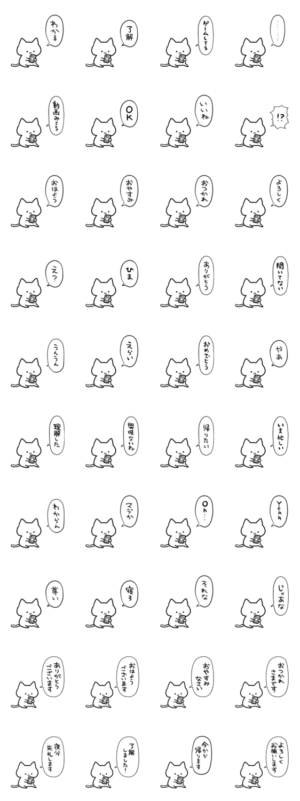 常にスマートフォンを見ながら話す猫のスタンプです。スマホが手放せない方とか相手の話に興味のないときとか塩対応したい時とかにもどうぞ。敬語もあります。オカヤマ より発売