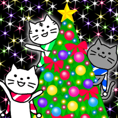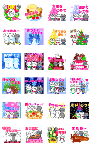 ちびにゃんトリオの第17弾。エフェクトスタンプです。きらきらした雪と光のスタンプです。冬を楽しくお過ごしください。メイシン より発売