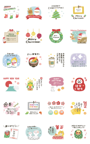 大人が使えるシンプル敬語バージョンのスタンプです。クリスマスと年末年始に!年賀状やXmasカード代わりにも。かなぴ より発売