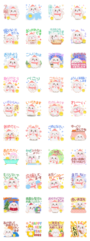 クリスマス、お正月…Babyうさぎさんの冬に活躍するスタンプです。めぐみん より発売