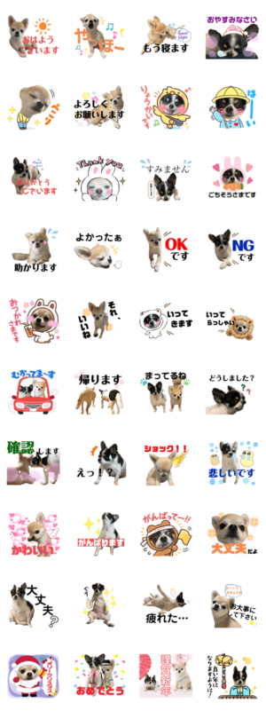 チワワのモカ(男の子)とペコ(女の子)のLINEスタンプの第2弾です。クリスマスとお正月に使えるスタンプも入れてみました。