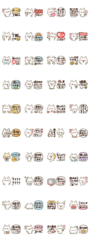 かおもじ♡うさぎ♡カラフルかわいい スタンプ画像一覧