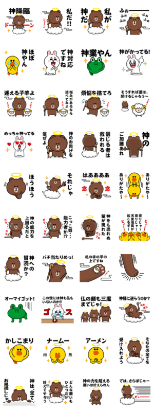 ブラウン/コニー/サリー/レナード/LINEキャラクターズ/神様/かみさま/カミサマ/かみ/神/仏様/ゴッド/GOD/指導者/お客様/男神/神至/霊神/大御神/神明大神/天道様/皇神 ※BROWN & FRIENDS をみんなでつくろう!キャンペーン参加スタンプです4A-Studio(よんえーすたじお) より発売