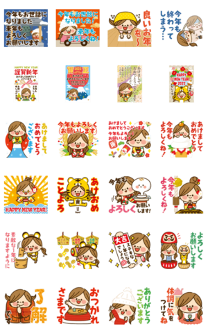 かわいいキャラのお正月スタンプです。素敵ですね!24種類ダウンロードできるのは良いですね!