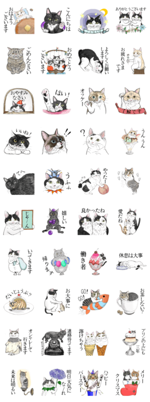 保護猫さんたちのペン画による日常使いスタンプです。愛 より発売