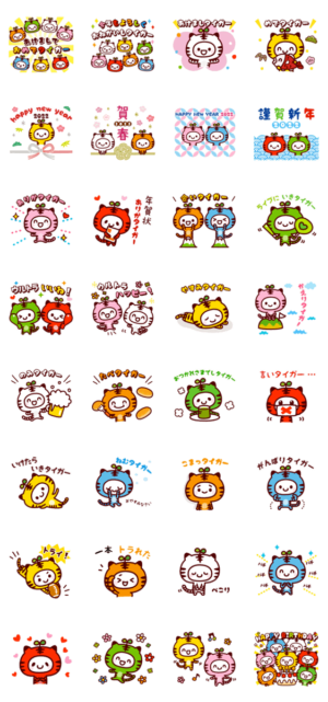2022年お正月と日常にも使えるトラさんたちのスタンプです。ダジャレ多め。KF STUDIO より発売