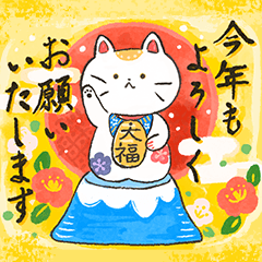 年末年始は縁起の良い招き猫の大福ちゃんで挨拶を送ろう。みんな元気に過ごせますように。お正月の挨拶から日常会話の気づかいなど、長く使えます♪※こちらは再販です