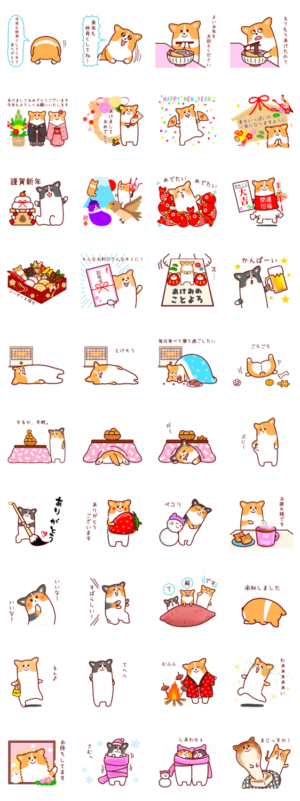 かわいい犬のフラッフィーコーギー、トライカラーコーギー、ブラックタン、黒コギ。年末年始、お正月、冬シーズンに活躍します。毎年使えます。日常会話。