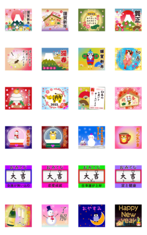 きれいなお正月スタンプです。素敵ですね!24種類ダウンロードできるのは良いですね!