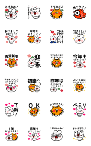 動く!ウサギとトラの年末年始 スタンプ画像一覧