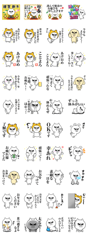 目ヂカラにゃんこの2022年寅年のお正月・年末年始スタンプです。毎年使えるスタンプも多数入っています。ロシヒ より発売