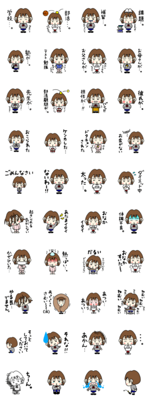 学生ぐち子の憂うつな気持ちや愚痴ばかりを詰め込んだスタンプです。香奏 より発売