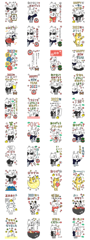 昨年末に販売しましたスタンプのリメイク版です。ラクガキ調☆くまカップルとうさぎのフレンズ♡年末年始に使えるスタンプです。 正月/新年/挨拶/使える/トラ/寅年/とら/虎 ※このスタンプはトークルームで大きく表示されるBIGスタンプです。noamaman より発売