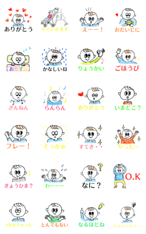 ありがとう、おだいじに、お大事に、りょうかい、ざんねん、やったー、ごほうび、ちゅー、おやすみ、きらきら、とんでもない。日常会話。赤ちゃん、男の子ママ、お母さん。