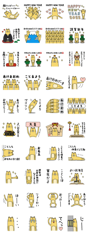 真顔で新年を祝うスタンプ 寅年のダウンロードはこちら↓