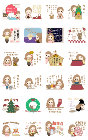 フラガール、卓球ガールでおなじみリノちゃんシリーズ、アニメーションが飛び出すポップアップスタンプ。お正月、クリスマス、年末、誕生日、ハロウィンなどのトークに。ナカ・ザリエ より発売
