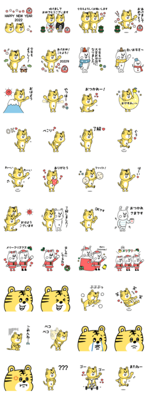 年末年始に使えるとらのスタンプ☆普段使いもできるスタンプも多数あります!寅年/とら/トラ/虎/くま/うさぎ