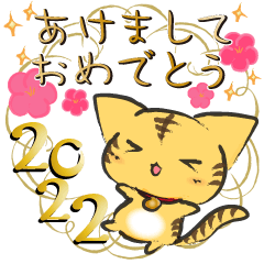 ふにゃんとした猫のオレンジ色の茶トラの新年にぴったりなスタンプです。