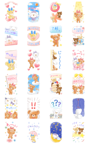 パステルカラーが特徴的なユニベアシティの大きなスタンプです。ふわふわした夢かわいいスタンプをラインに飾って癒されましょう。